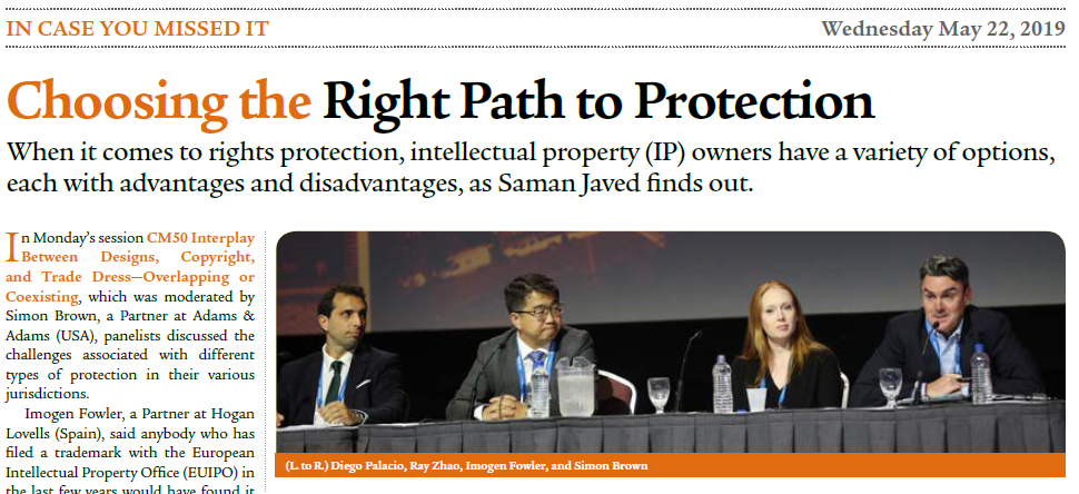 On May 20, our Senior Partner, Ray Zhao, was invited by INTA to give a keynote speech at the session of “CM50 Interplay between Designs, Copyrights and Trade Dress – Overlapping or Coexisting”. Mr. Ray Zhao and the IP experts from South Africa, the United States, Argentina, and Spain exchanged and discussed the strategies and practices for the major IP such as design patents, copyrights, and trade dress in the main markets of the world. In addition, Ray Zhao introduced the relevant protection mechanisms in India and Japan, which is very similar to that of China. In this regard, he pointed out that in China, India or Japan, for the protection of trade dress, IP rights holders have multiple options for protection such as 3D trademarks, copyrights, design patents, etc., and should make full use of the advantages and disadvantages of various rights for the optimal protection.