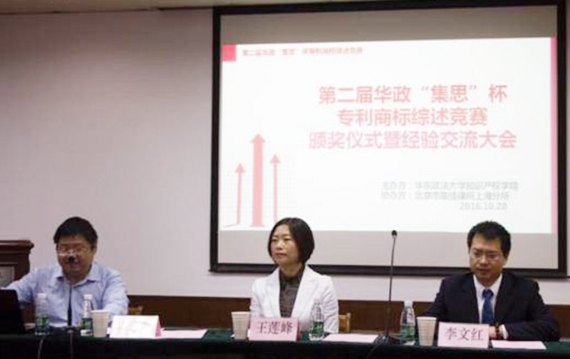 由華東政法大學(xué)知識(shí)產(chǎn)權(quán)學(xué)院主辦、北京市集佳律師事務(wù)所上海分所提供支持的第二屆“集思”杯專利商標(biāo)綜述競(jìng)賽圓滿落下帷幕,2016年10月28日,競(jìng)賽頒獎(jiǎng)儀式暨經(jīng)驗(yàn)交流大會(huì)在華東政法大學(xué)舉行。