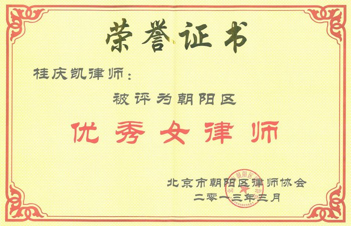 2013-03-113月6日,朝陽(yáng)區(qū)律師協(xié)會(huì)舉辦“律媛——春之頌”慶三八聯(lián)誼會(huì),并在會(huì)上公布了入選“首屆朝陽(yáng)優(yōu)秀女律師”名單。集佳律師事務(wù)所桂慶凱律師憑借在知識(shí)產(chǎn)權(quán)領(lǐng)域多年來(lái)的專業(yè)優(yōu)質(zhì)服務(wù),成功當(dāng)選“首屆朝陽(yáng)優(yōu)秀女律師”。