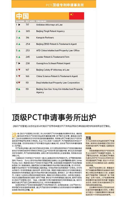 作為全球知識(shí)產(chǎn)權(quán)界的權(quán)威期刊,MIP依據(jù)WIPO(世界知識(shí)產(chǎn)權(quán)組織)網(wǎng)站已經(jīng)公開(kāi)的各國(guó)專(zhuān)利申請(qǐng)數(shù)量,對(duì)全球十四大知識(shí)產(chǎn)權(quán)市場(chǎng)中提交PCT申請(qǐng)最多的專(zhuān)利事務(wù)所進(jìn)行排名。在其公布的年度事務(wù)所排名中,集佳已連續(xù)兩年成為中國(guó)申請(qǐng)PCT專(zhuān)利最多的事務(wù)所。