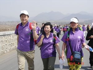 在豐富多彩的熱場運動之后,市領導和國知局領導擊鼓啟程,集佳隊伍有序、整齊地走出主會場,開始了16公里的長走挑戰。在和煦的春風中,大家欣賞著山清水秀的十三陵水庫和景色秀麗的蟒山森林公園,在集佳員工的相互鼓勵下,大部分同事都順利地在四個認證點領取到了彩色絲帶,走完全程,獲得了認證證書。