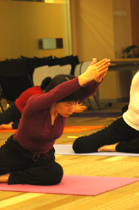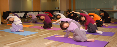 在公司新落成的集佳講堂,中午或晚上,瑜伽老師帶領(lǐng)大家放松、舒展。