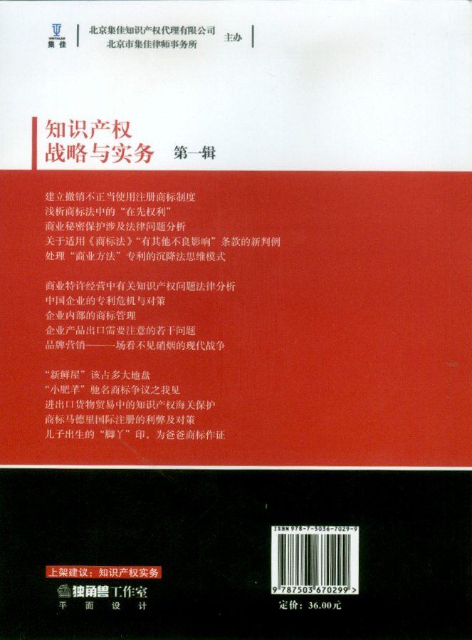 該書(shū)的出版得到了法律出版社的大力支持。根據(jù)法律出版社與集佳的共同規(guī)劃,《知識(shí)產(chǎn)權(quán)戰(zhàn)略與實(shí)務(wù)》連續(xù)出版物計(jì)劃每年出版2至3本。目前,《知識(shí)產(chǎn)權(quán)戰(zhàn)略與實(shí)務(wù)(第二輯)》也即將出版,第三輯正在制作中。