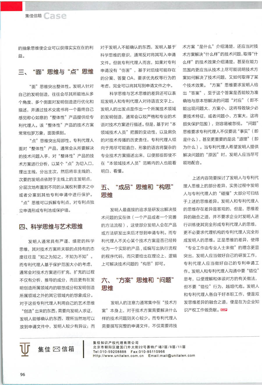 集佳代理人文章《發(fā)明人與專利代理人的思維差異及融合之道》被《電子知識產(chǎn)權(quán)》發(fā)表