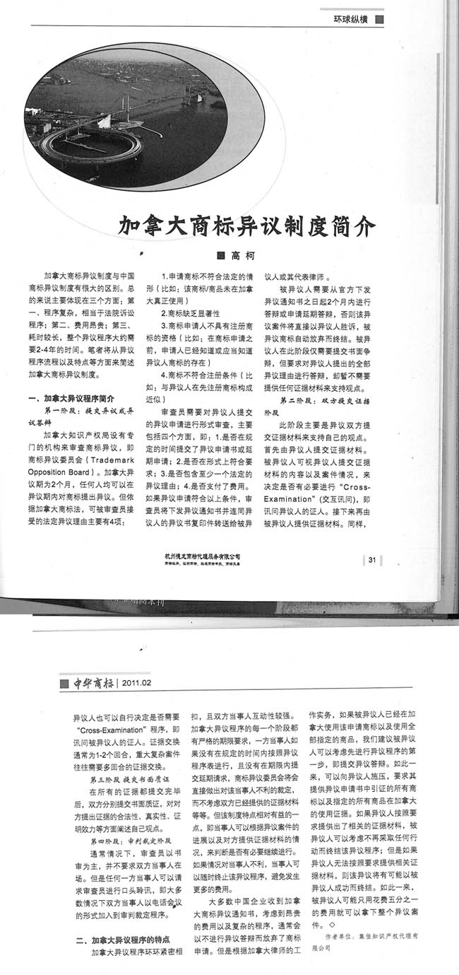 《中華商標》:加拿大商標異議制度簡介
