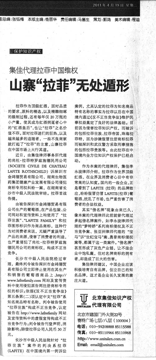 法律聲明 Unitalen Mail Box ?2016 Unitalen Attorneys at Law 版權(quán)所有 集佳知識(shí)產(chǎn)權(quán)代理有限公司 京ICP備11033076號 京公網(wǎng)安備11010502020670