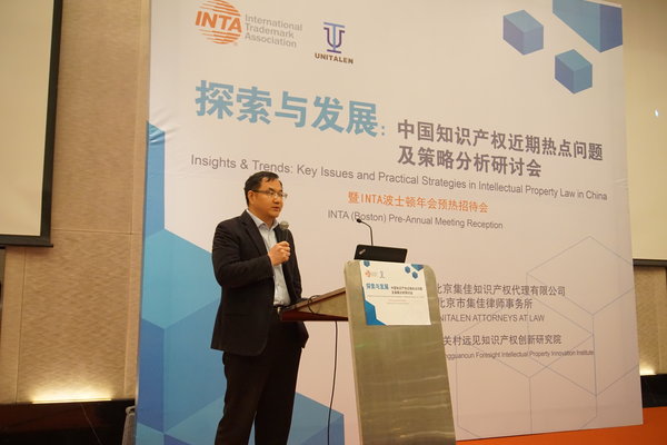 3月22日下午,由國際商標(biāo)協(xié)會(huì)(INTA)、北京集佳知識(shí)產(chǎn)權(quán)代理有限公司、北京市集佳律師事務(wù)所、中關(guān)村遠(yuǎn)見知識(shí)產(chǎn)權(quán)創(chuàng)新研究院共同舉辦的2019 INTA 年會(huì)預(yù)熱酒會(huì)在北京成功舉行。INTA中國全球咨詢理事會(huì)聯(lián)合主席、不正當(dāng)競(jìng)爭委員會(huì)副主席李永波先生出席,北京高院法官、北京知識(shí)產(chǎn)權(quán)法院法官、知名高校法學(xué)院教授、企業(yè)界代表、業(yè)內(nèi)同仁共100余位嘉賓參加了會(huì)議。