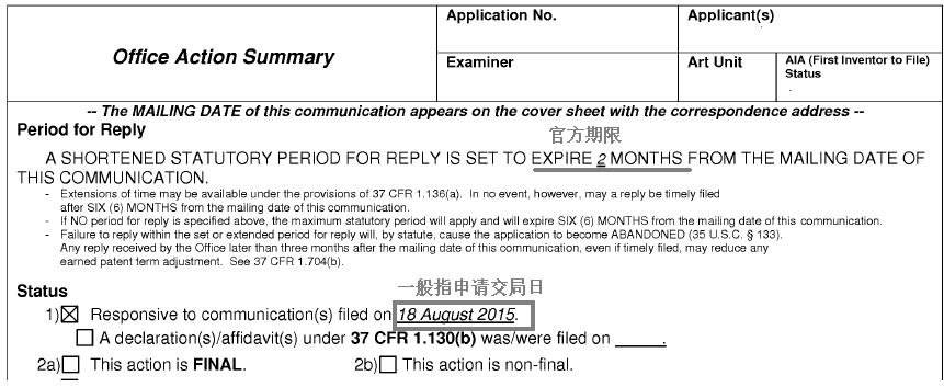 審查員在NR之后發出的最終審查意見通知書,FR的官方答復期限為FR發文日起的三個月內。