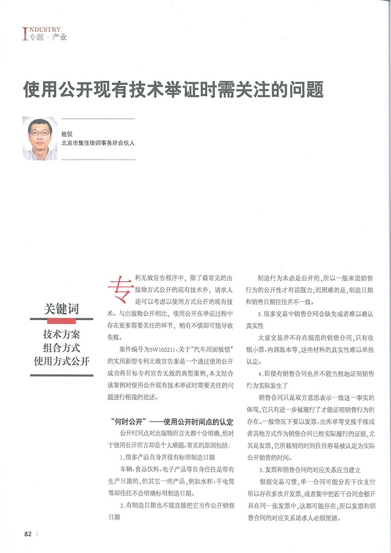 集佳文章《使用公開現有技術舉證時需關注的問題》在《中國知識產權》發表