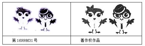通過上述列舉,其中案例三、案例四屬于較為常見的因侵犯著作權而被不予核準注冊(宣告無效)的案件情形。案例三中,系爭商標與著作權作品完全相同;案例四中,系爭商標是將兩個著作權作品組合并稍作修改而來。對于這兩種情況,屬于較為簡單的判斷系爭商標與著作權作品是否相同的情形,一般僅僅從商標本身出發,直接觀察即可得之。
