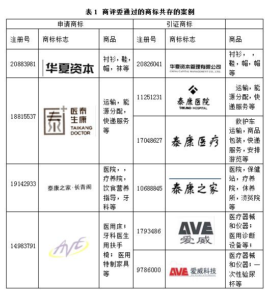 表1 商評(píng)委通過(guò)的商標(biāo)共存的案例