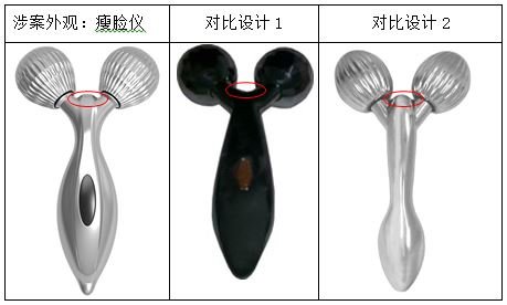 合議組認為,用于組合的對比設計特征應當是對比設計中具有相對獨立視覺效果的組成部分,是以一般消費者眼光可直接從對比設計中自然區(qū)分出來的部分。本案中,證據(jù)2的兩個按摩球中間的凸出部位實際上是手柄的頂部,證據(jù)2的手柄為一體構(gòu)成,該凸出部分屬于特意劃分、截取所得出的部分,不是一般消費者可直接從證據(jù)2中自然區(qū)分獲知的,不能作為設計特征加以組合。