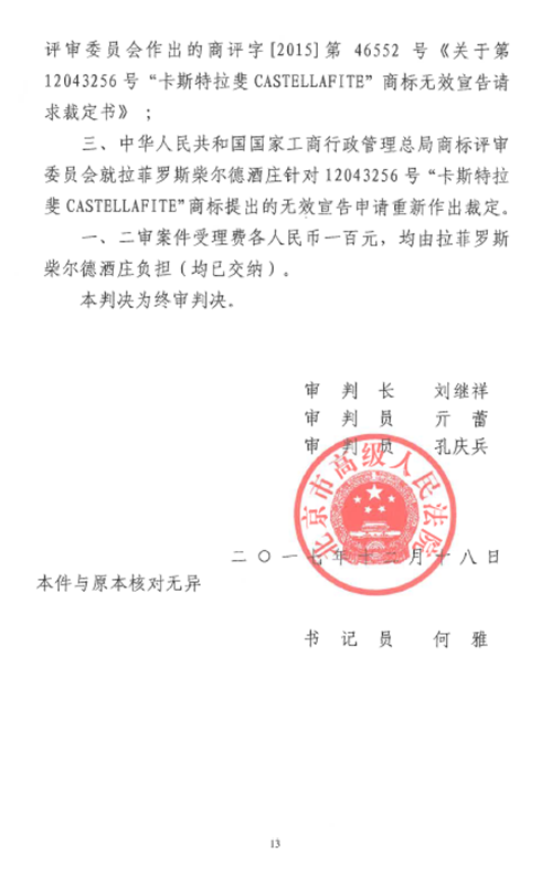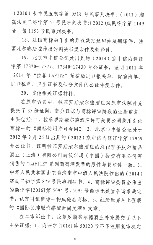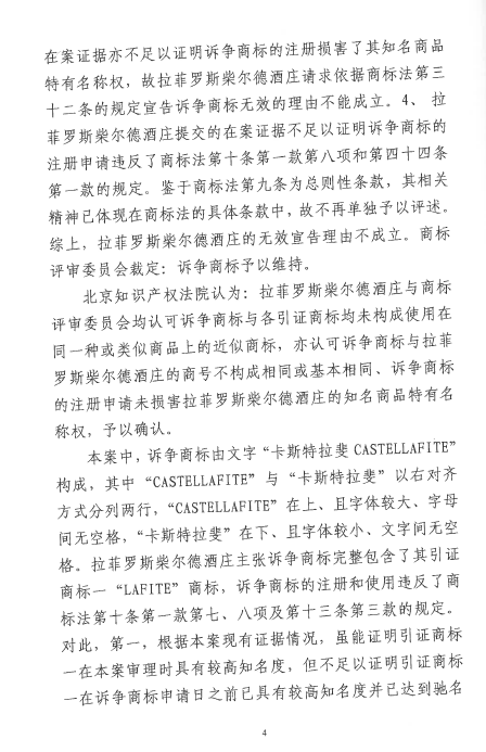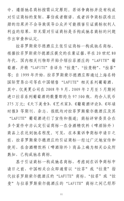 自2016年以來,商評(píng)委、北京知識(shí)產(chǎn)權(quán)法院已經(jīng)先后在十幾個(gè)裁定或行政判決中認(rèn)定“LAFITE”為馳名商標(biāo),但大多還在行政訴訟程序之中。本案是首個(gè)終審判決,對(duì)“LAFITE”在中國的馳名商標(biāo)保護(hù)之路,具有里程碑式的重要意義。