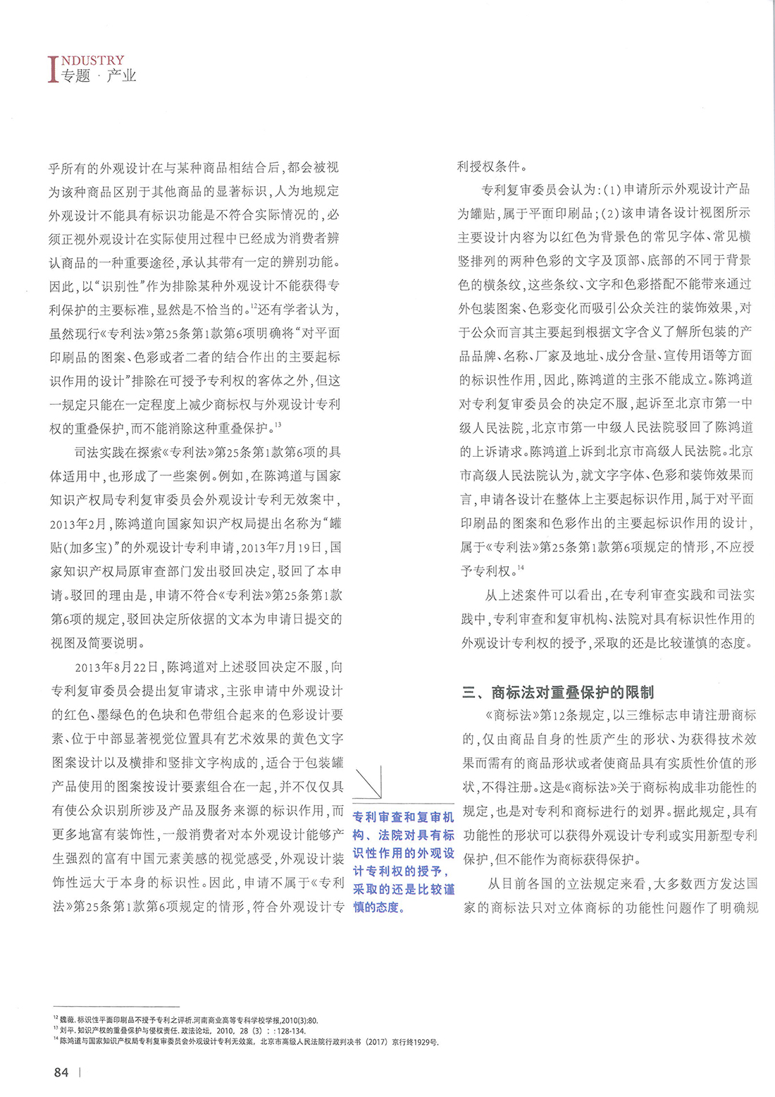 集佳文章《專利權與商標權的重疊保護問題研究》在《中國知識產權》發表