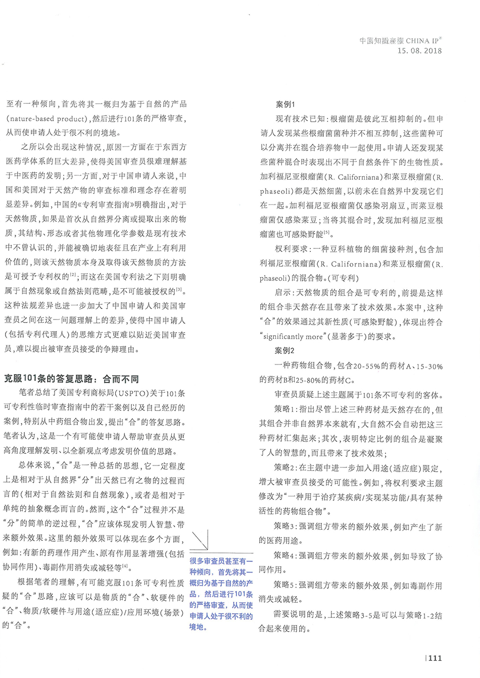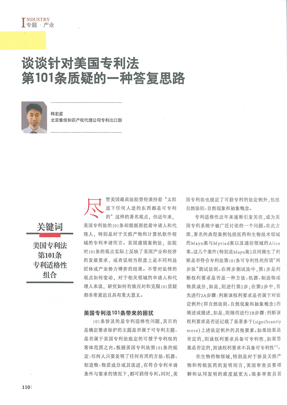 集佳文章《談?wù)勧槍?duì)美國(guó)專利法第101條質(zhì)疑的一種答復(fù)思路》在《中國(guó)知識(shí)產(chǎn)權(quán)》發(fā)表