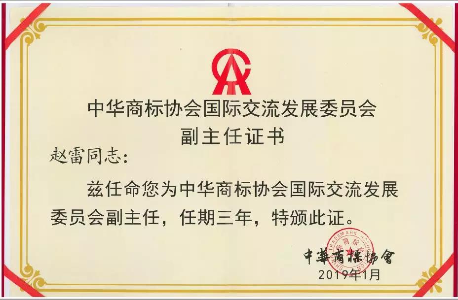 會議期間還舉行了中華商標協會國際交流發展委員會成立儀式。成立該委員會的目的是為了通過與國際組織或區域性組織、各國政府機構、各國司法機構或立法機構的交流溝通,進一步深化商標領域的國際交流與合作,推動中華商標協會的國際化進程,幫助協會會員拓展國際視野,為開展商標領域的國際合作搭橋鋪路。北京律盟知識產權代理有限責任公司鐘紅波女士當選為委員會主任,集佳合伙人趙雷律師與其他十余家會員單位的代表當選為副主任,任期三年。