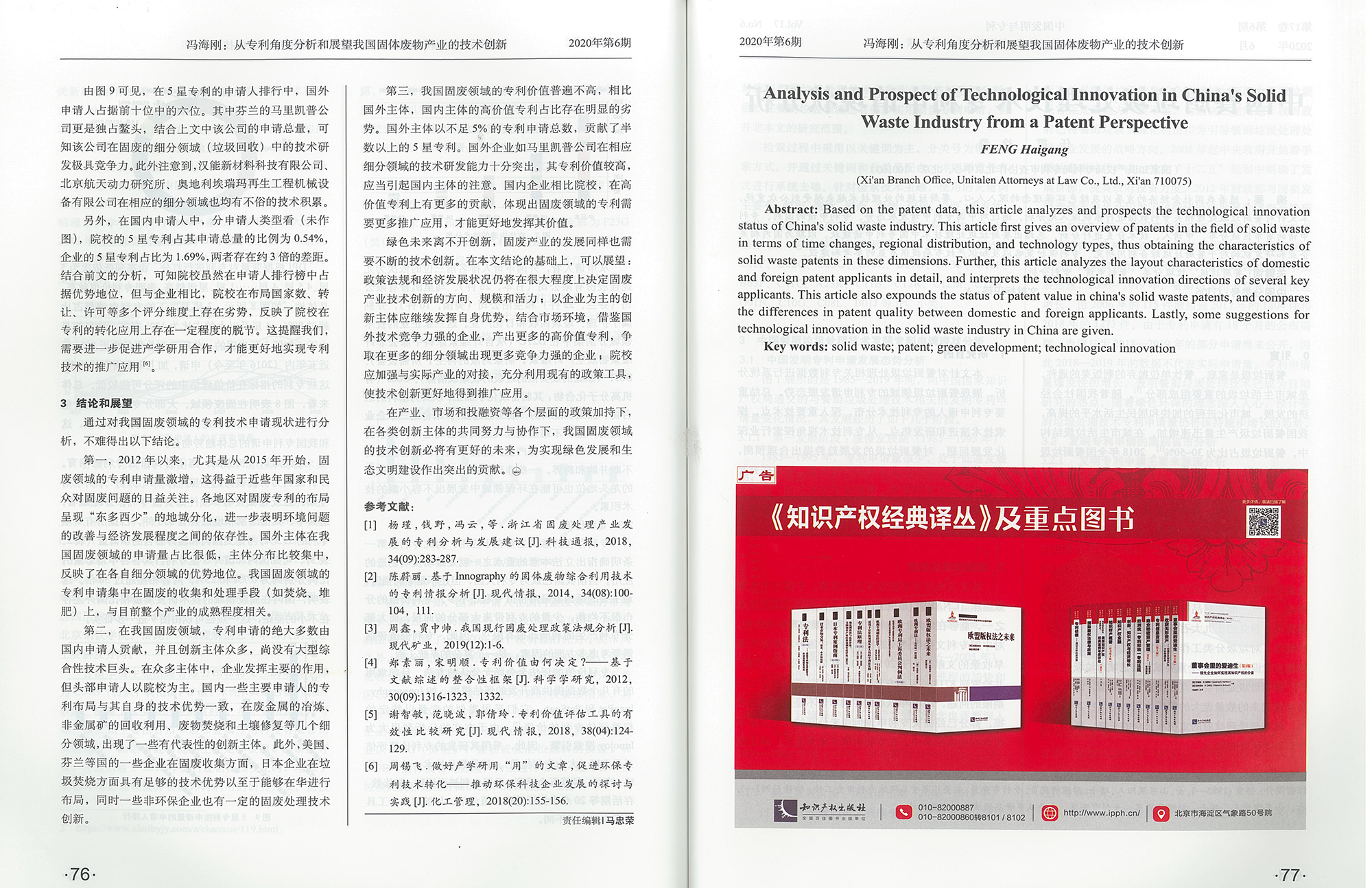 集佳文章《從專利角度分析和展望我國固體廢物產業的技術創新》在《中國發明與專利》發表