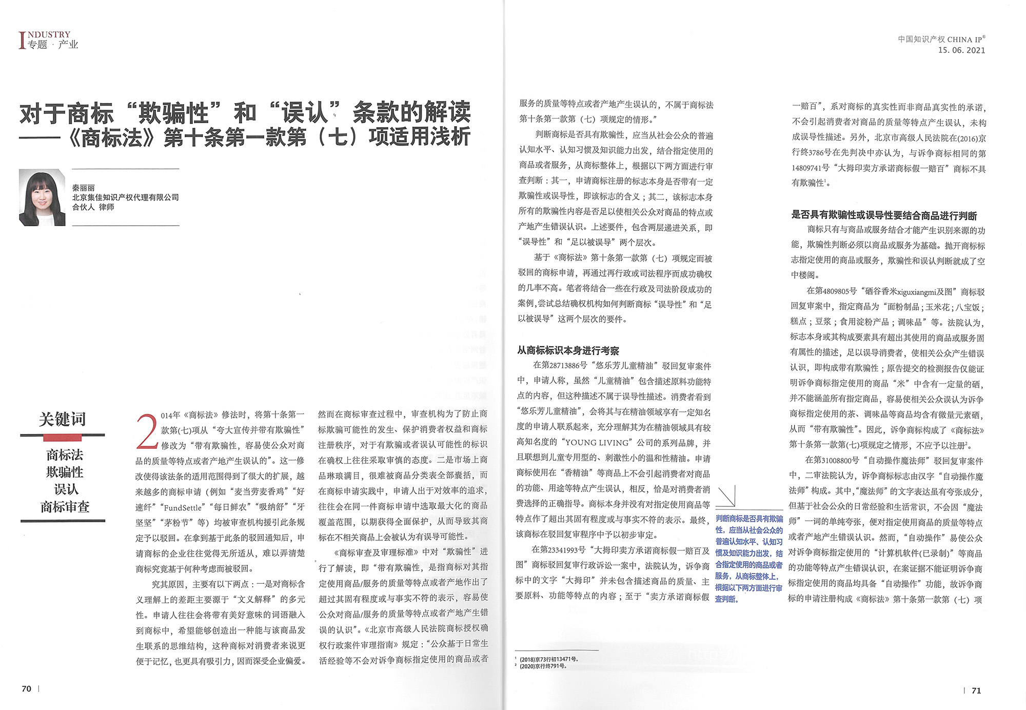 集佳文章《對于商標“欺騙性”和“誤認”條款的解讀——<商標法>第十條第一款第(七)項適用淺析》