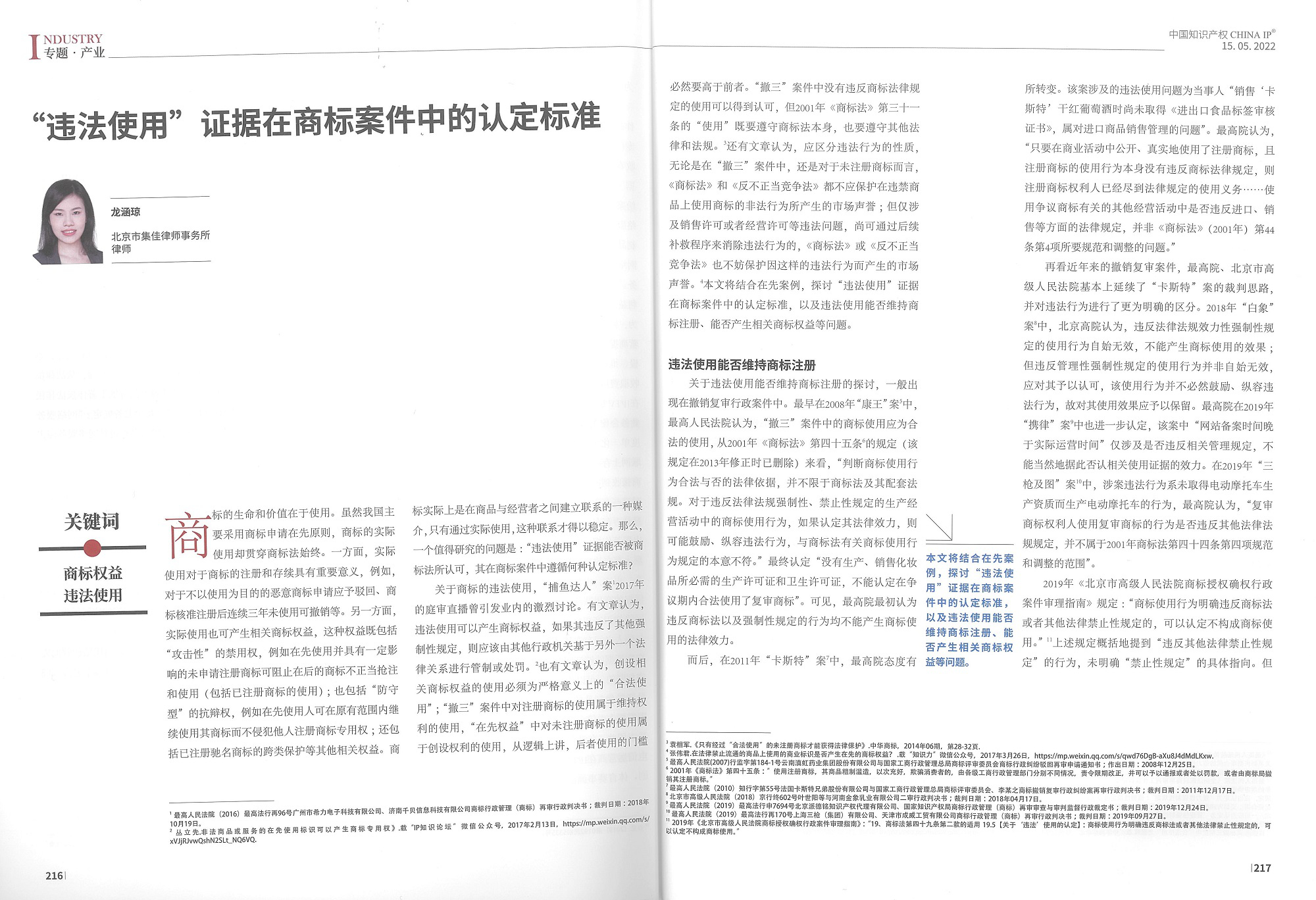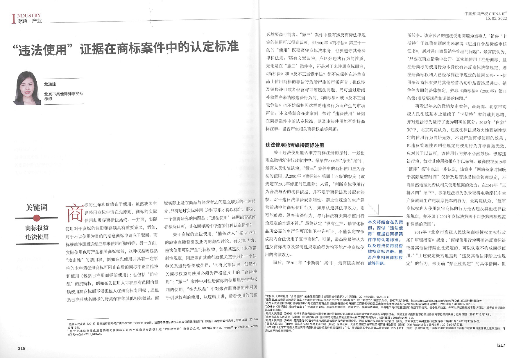 集佳文章《“違法使用”證據在商標案件中的認定標準》在《中國知識產權》發表
