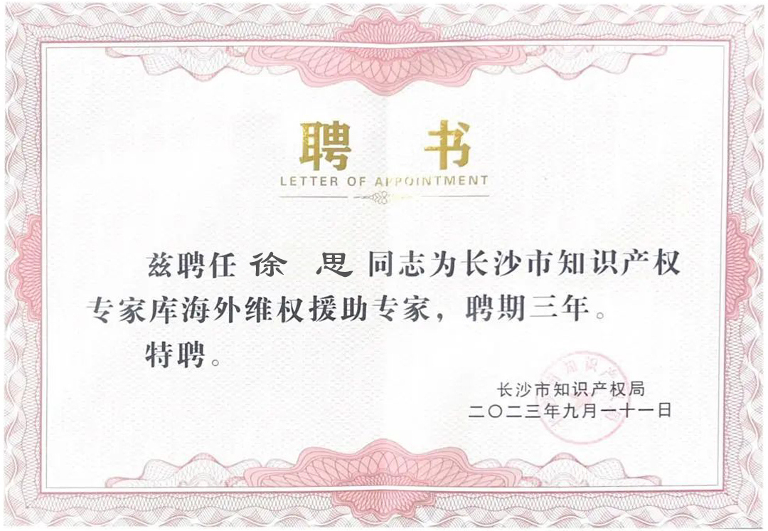 近期,長(zhǎng)沙市知識(shí)產(chǎn)權(quán)局公布了第二批長(zhǎng)沙市海外知識(shí)產(chǎn)權(quán)維權(quán)援助專(zhuān)家名單,集佳趙雷、朱剛琴、徐思、倪趕重4位專(zhuān)家入選。