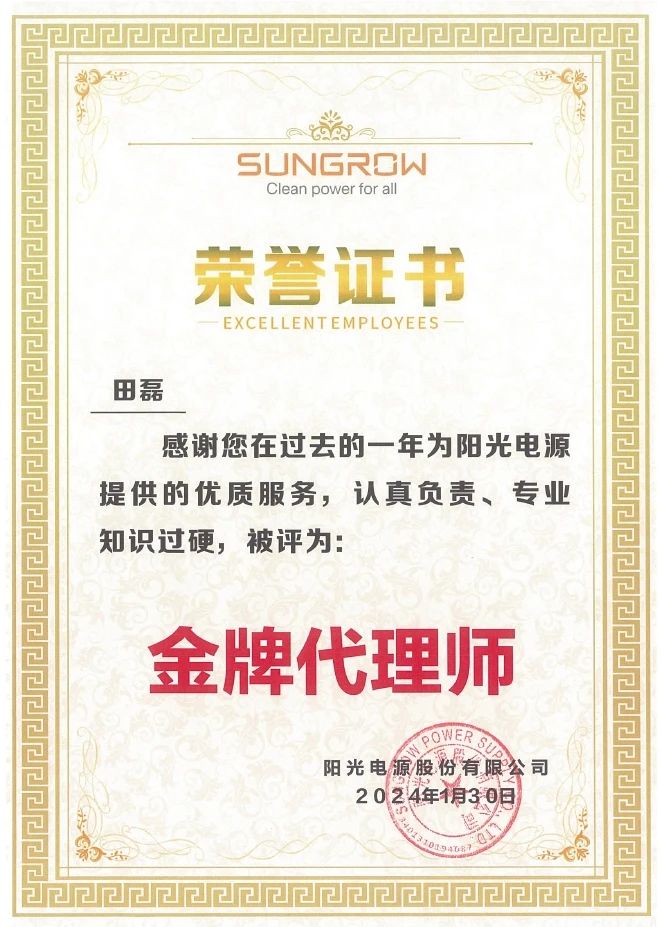 新春伊始,集佳再獲喜訊——陽光電源股份有限公司授予集佳“優秀合作伙伴”榮譽稱號。