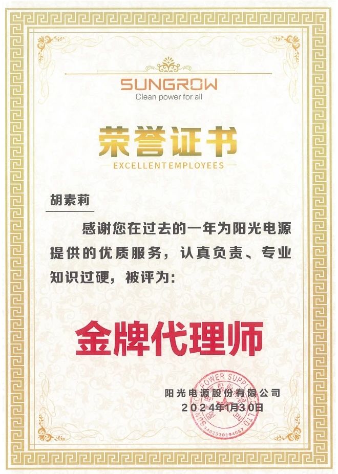 多年來,集佳與陽光電源保持著良好的合作,集佳為陽光電源撰寫的發明專利連續多年在中國專利獎評比中獲得中國專利銀獎和中國專利優秀獎等榮譽。陽光電源對集佳及其優秀團隊提供的高質高效專業服務表示贊許與感謝,并授予集佳專利代理師安淼、高楊、郝琳佳、胡素莉、劉松、田磊、朱麗蘭等“金牌代理師”稱號,對他們認真負責、高度敬業的專業態度點贊!