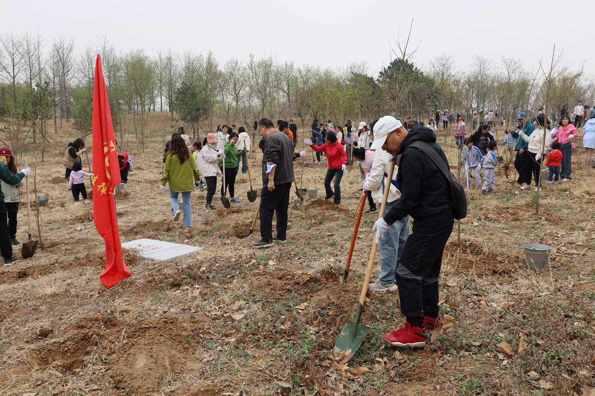 植樹現(xiàn)場(chǎng),大家熱情高漲、干勁十足,